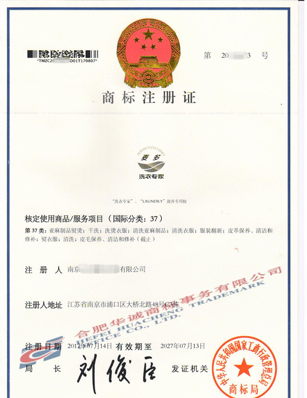 您委托我所代理商标注册申请,名称为“麦多”37类商标注册证已下达。