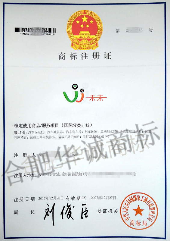 “未未及图” 12类商标注册证下达