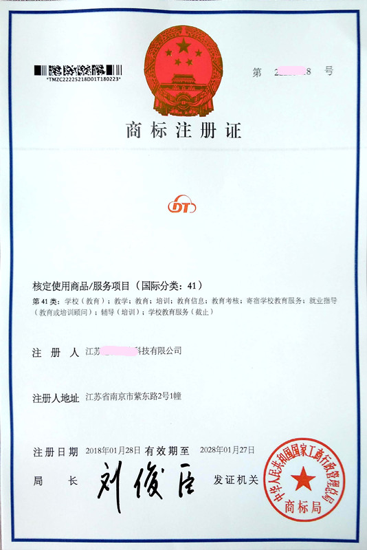 "DT" 41类商标注册证下达